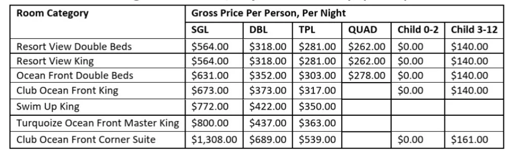 ⚠️ Note: Guests booking single occupancy must book through the travel advisor.