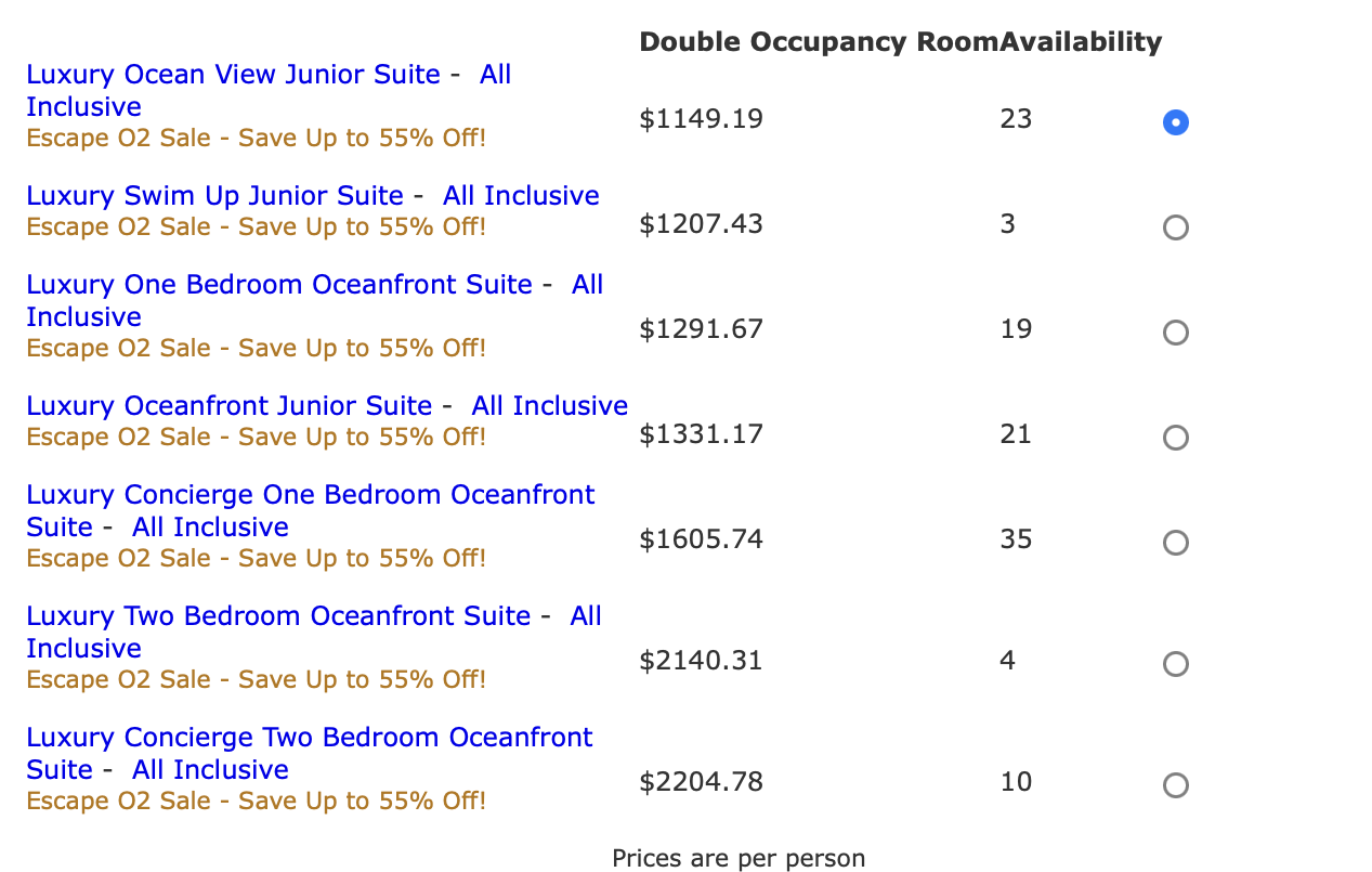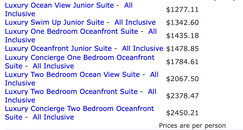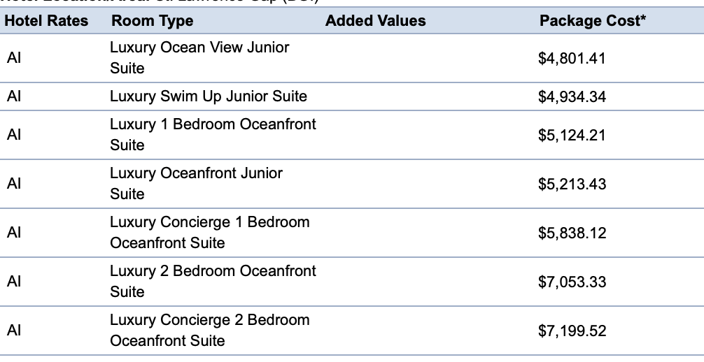 hotel only rates - based on a 3 night stay - double occupancy room. please reach out for single occupancy pricing.